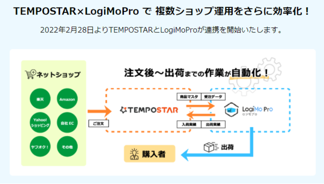 次世代型クラウド物流アウトソーシングサービス「LogiMoPro」を提供する株式会社清長(本社:東京都千代田区、代表取締役社長:武田紀世彦 以下清長)は、多様なECクライアント様のニーズに合わせたトータルECサポートのSAVAWAY株式会社(本社:東京都中野区、代表取締役社長:齋藤 直、以下SAVAWAY)が提供する複数ネットショップ一元管理システム「TEMPOSTAR」との連携を開始し、LogiMoProとTEMPOSTARとのCSVによるデータ連携とRPAによる自動化サービスをリリースしました。