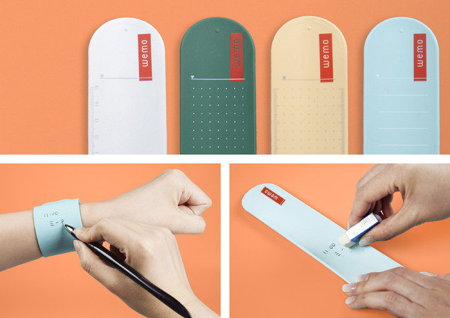「いつでも どこでも かける おもいだせる」をテーマに、記憶に対する物理的/精神的なストレスを軽減する発想から生まれたプロダクト、それがwemo!油性ボールペンで書いて消せるウェアラブルメモです。何度も書いて消せる、濡れても消えないため屋外や水中での作業にも使用でき、バンドタイプ・パッドタイプ・ケースタイプの3種から目的やTPOに合わせて選べます。wemoは、2018年の”日本文具大賞 機能部門 優秀賞”を受賞。発売以来累計80万個を販売しています。