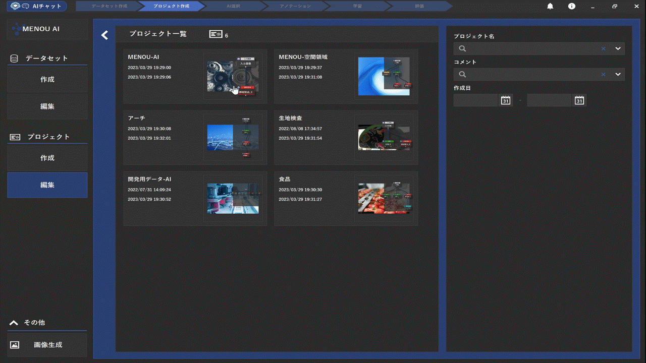 「MENOU AI開発プラットフォーム」( https://menou.co.jp/menou-te/ )は、画像AI開発のためのノーコード統合開発環境です。複雑な検査・検品・点検ソフトウェアをプログラミングすることなく、ノーコードで開発することを可能にします。