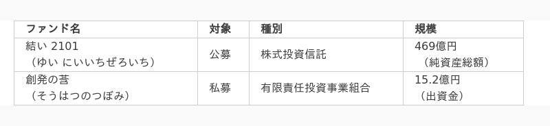 これに加えて、2021年3月、これからの社会を創発する可能性を秘めたスタートアップを支援する有限責任投資事業組合「創発の莟」(私募)の運用・募集を開始しました。この2つのファンドを通じて、社員数人のスタートアップから創業100年を超える上場企業まで幅広いステージの会社を応援し、持続的な社会の発展に貢献できる運用会社を目指しています。