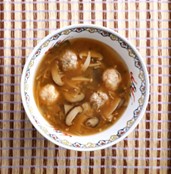 酸味がやみつきになるボリューム満点の酸辣湯。食感の異なるきのこと、旨味たっぷりの青魚「コノシロ」で作ったコノシロボール(つみれ)を加えました。栄養満点の酸っぱいスープは、食欲がない日やちょっと小腹を満たしたい時にぴったりです。