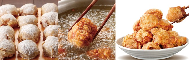 『丁寧に丸めて』から揚げる事によって、肉汁と旨味を閉じ込めた食べ応えのあるジューシーな味わいです。油切れがよく『サクサクとした衣』に仕上げる為に『唐揚げ粉』の開発には何度も試作を繰り返しました。たくさんのこだわりが詰まった『旨塩からあげ』です。
