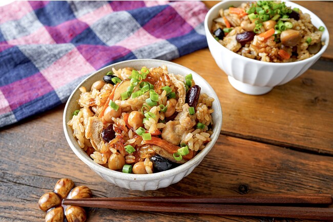 【coto作:鶏ごぼうと蒸しサラダ豆の五目炊き込みご飯】