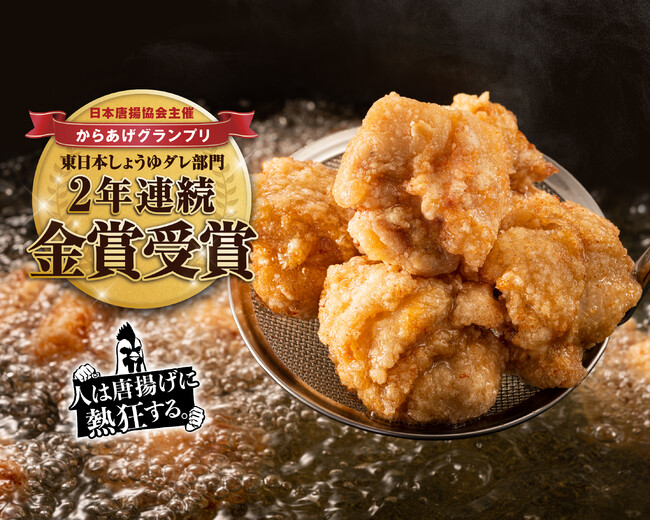 前年度の唐揚げ日本一!を決める「第13回からあげグランプリ(R)」では、「人は唐揚げに熱狂する。」は多数の強豪が集まる「東日本しょうゆだれ部門」にて、2021年に続き、「金賞」を受賞いたしました。