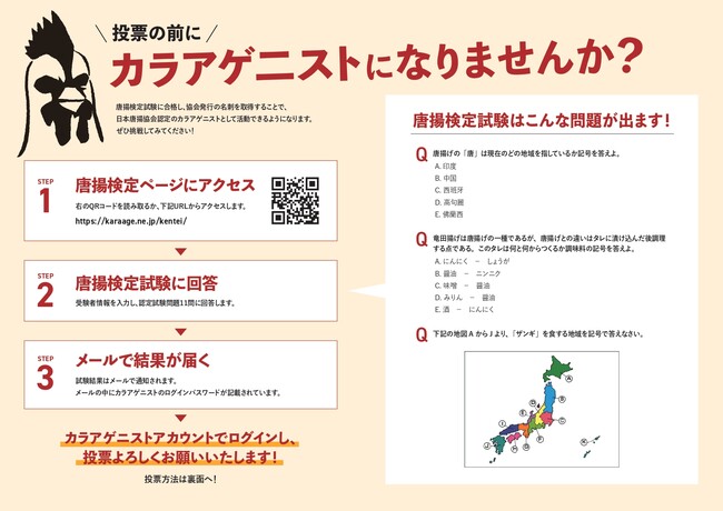 日本唐揚協会主催の2010年より毎年開催する人気投票企画。SNS等による一般投票にて予選投票、決選投票を経て11部門受賞店を決定する。(主催:日本唐揚協会)