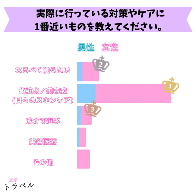さまざまなケア方法の中で圧倒的に多く選ばれたのは『化粧水/美容液』でした。