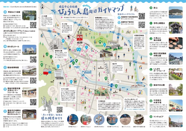冊子中央には、徳島市中心市街地「ひょうたん島周辺ガイドブック」を新規掲載し、街の散策に活用できるよう取り外しができる仕様となっています。