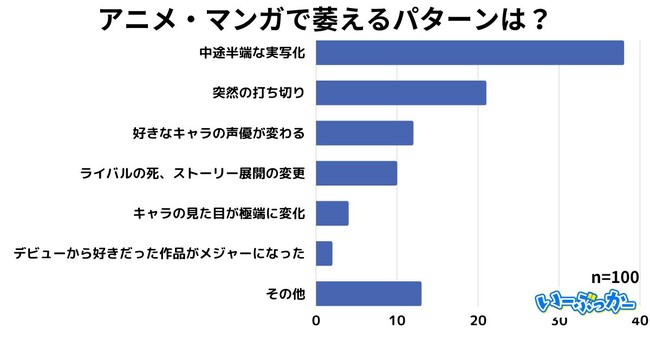 株式会社ACILが運営するモノやサービスに関する情報メディア『いーぶっかー』(https://acil.co.jp/media/)は、全国の男女100人を対象に「アニメ・マンガで萎えるパターンは?」をテーマとしたアンケート調査を実施致しました。