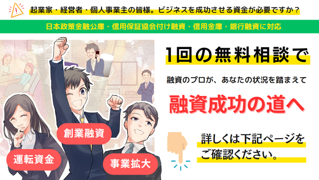 ■日本政策金融公庫や信用保証協会付け融資に対応|大好評の融資の無料診断と無料相談も実施中