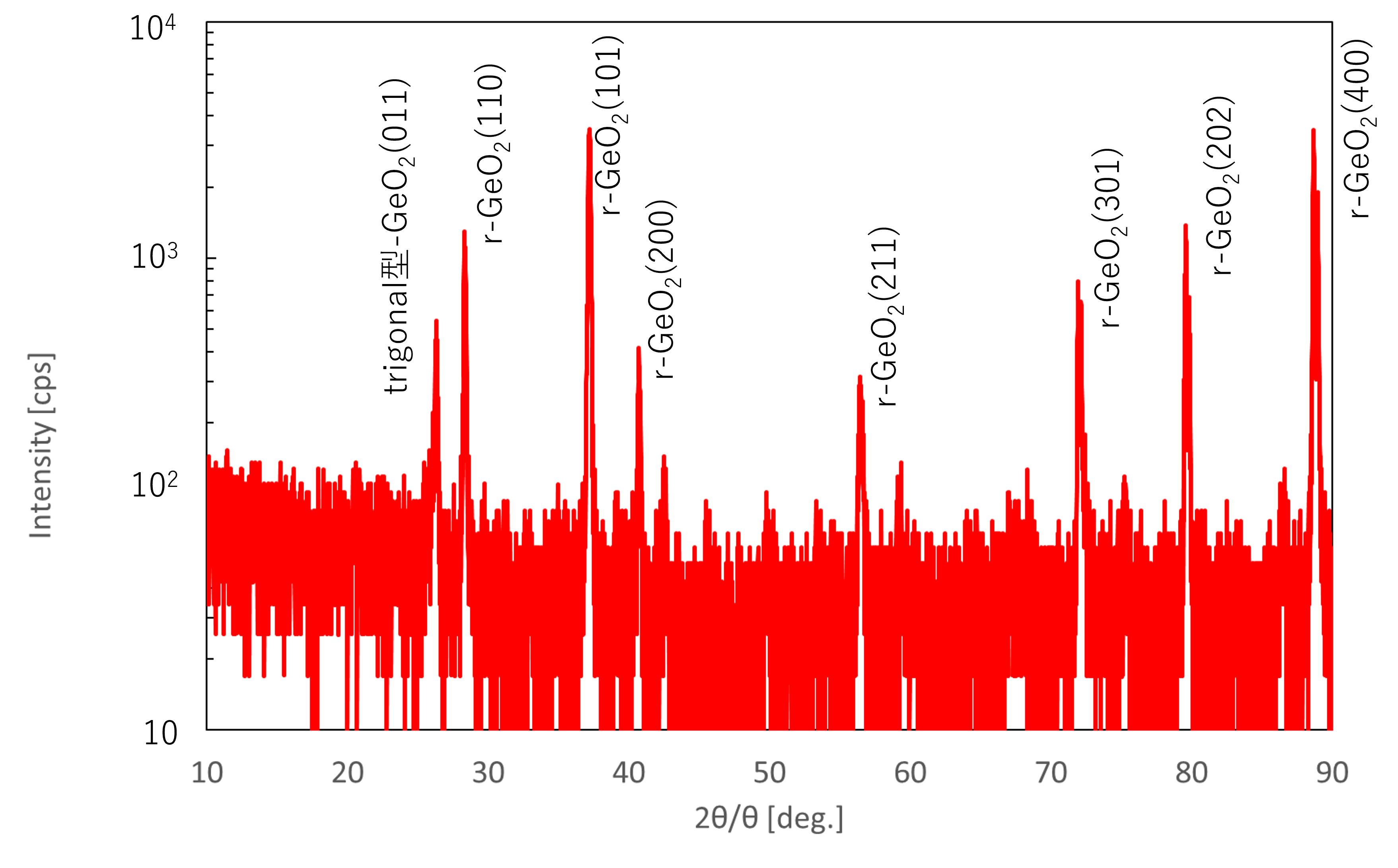 ルチル型二酸化ゲルマニウム(r-GeO2)は、ワイドバンドギャップ半導体である炭化ケイ素(SiC)や窒化ガリウム(GaN)よりもさらに大きなバンドギャップ(4.68 eV)をもち、p型とn型の両導電性の制御が可能であると理論的に予測されていることから、高耐圧・高出力・高効率なパワー半導体デバイスの実現の鍵となる、次世代の半導体材料として注目されています。