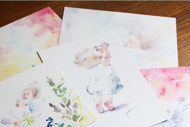 セットには詩人・エッセイストであり自由丁オーナーの小山将平がエッセイを書き、yukkoさんがイラストを描いた、「小さな君との日々を想う」をテーマにしたFAMILY LETER限定のコラボポストカードが含まれます。