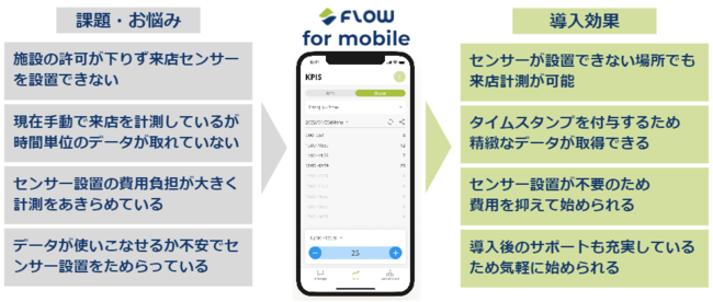 店舗経営改善に必要な店舗のデータについて、FLOWはこれまでその自動取得を推奨し、3DセンサーやWEBカメラ、WiFiなどIoTを駆使した計測・収集を行い、精緻なデータを活用することで、売上改善や業務効率化に貢献してきました。その一方で、「来客数を自動計測したいが店舗にセンサーを設置できない」「センサーが計測できない領域のデータ化もしたい」といったお悩みやご要望を、多くの小売業様からおうかがいしてきました。