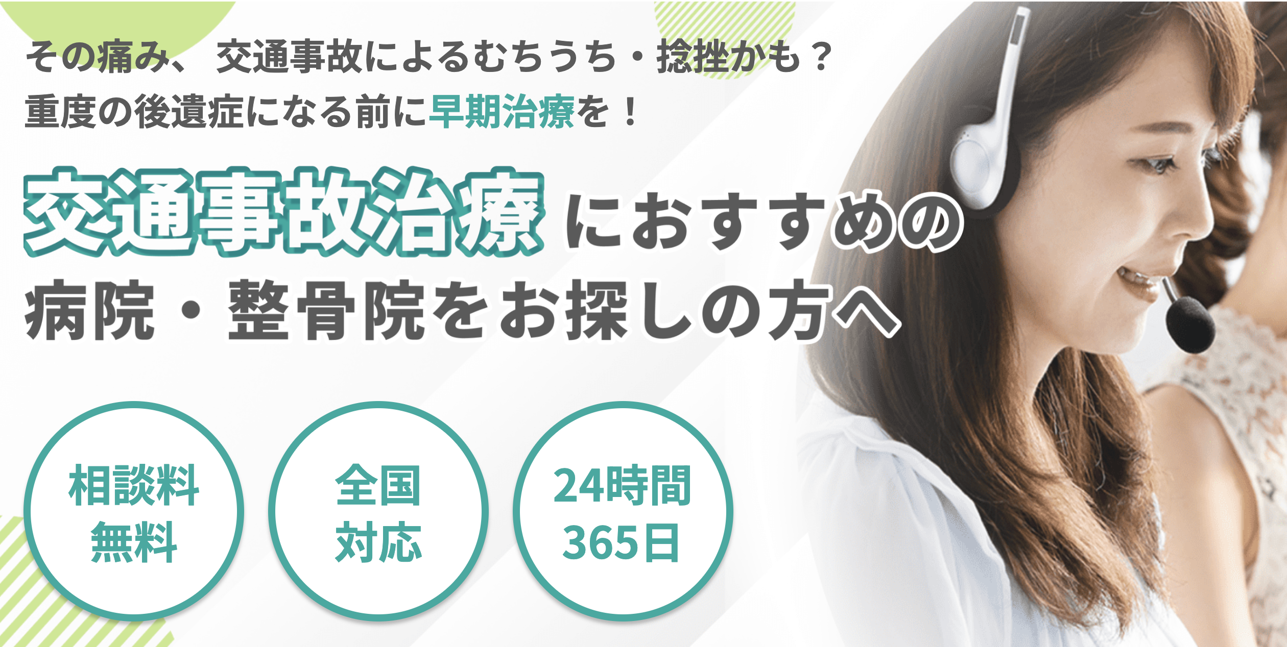 24時間無料で利用!初めて交通事故に遭った方、手続きが不安な方、突然痛みが襲ってきた方をサポート。