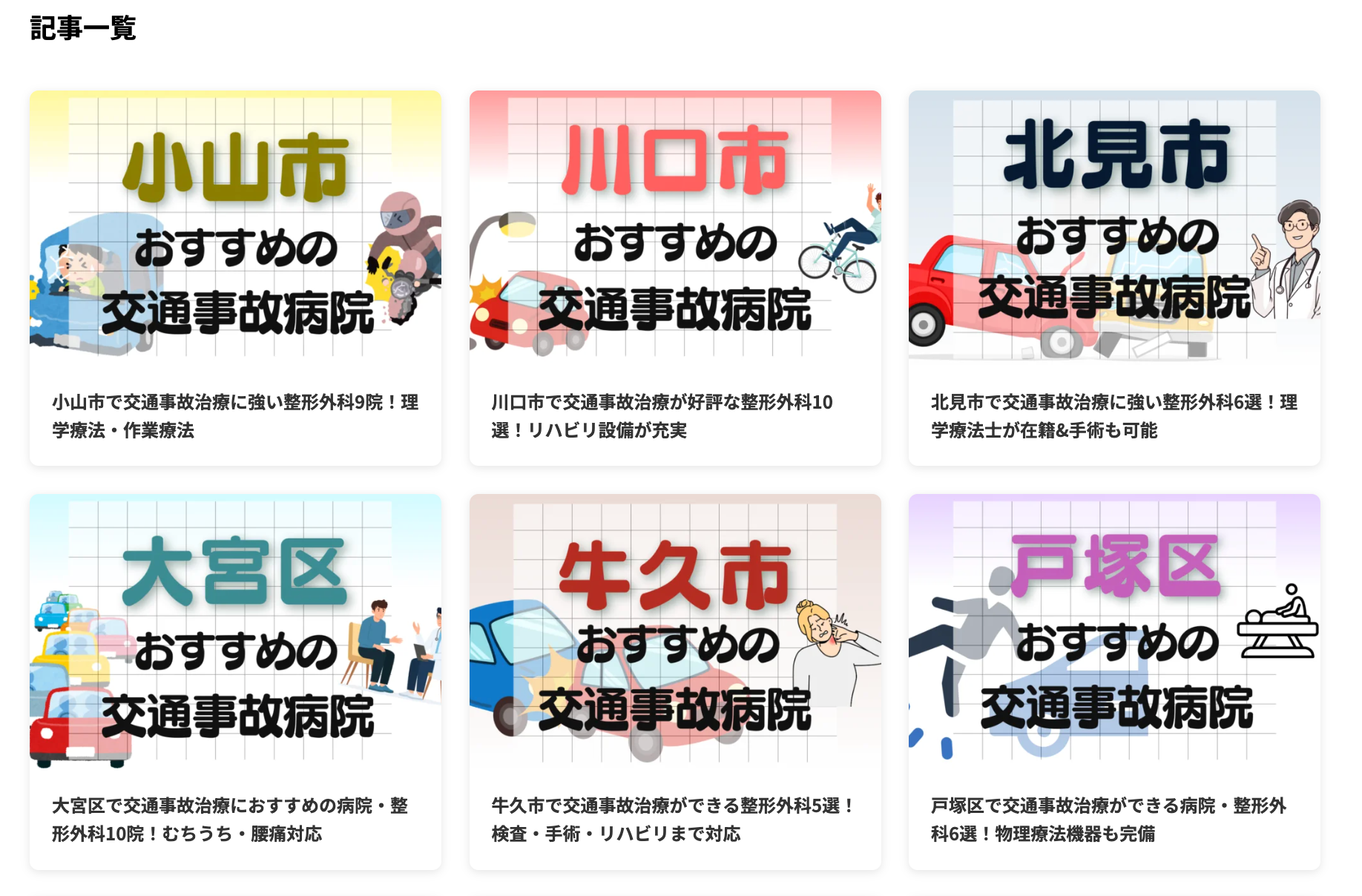 単なる病院リストではなく、交通事故治療の実績や評判を考慮し、患者様にとって安心できる整形外科を網羅。後遺症を残さないための治療環境を重視しています。