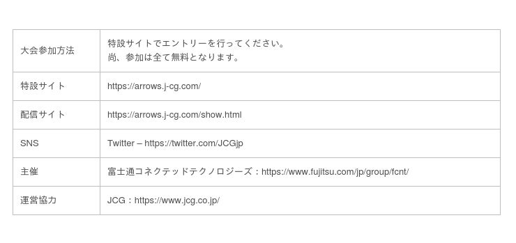 eスポーツのオンライン大会プラットフォームを提供する株式会社JCG(所在地:東京都品川区、代表取締役CEO:松本 順一)は、2020年8月3日(月)に開催するeスポーツ大会&バラエティ番組「presented by arrows 矢祭 YASAI〜モバイルeスポーツの旬を味わえ〜」の運営を行います。