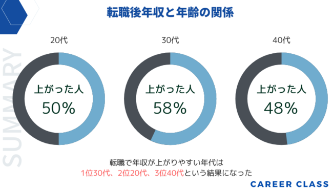 ・転職で年収が上がりやすい年代は、1位30代、2位20代、3位40代という結果になりました。