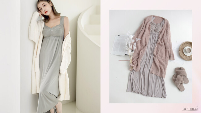 《Rakusia Sleep》ナイトブラワンピース マキシ丈(6color)/ミモレ丈(4color)