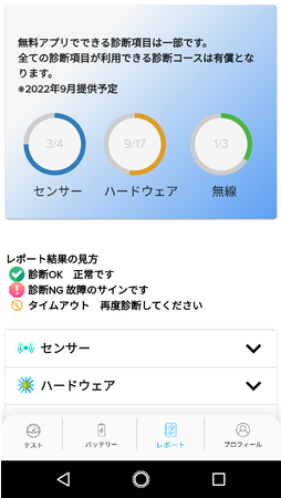 ・価格:基本無料(機能の手動テスト項目、バッテリー劣化診断、劣化予測診断機能は有償)