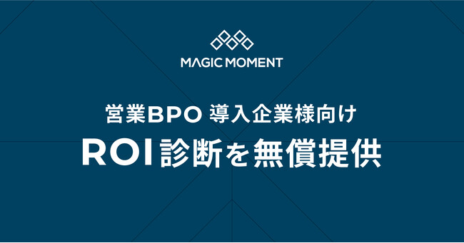株式会社Magic Moment(本社:東京都港区、代表取締役CEO:村尾祐弥、以下「当社」)は、社内の営業プロセスを外部委託する「営業BPO(Business Process Outsourcing)」を導入している企業様向けに、ROI診断を20社限定で無償提供致します。