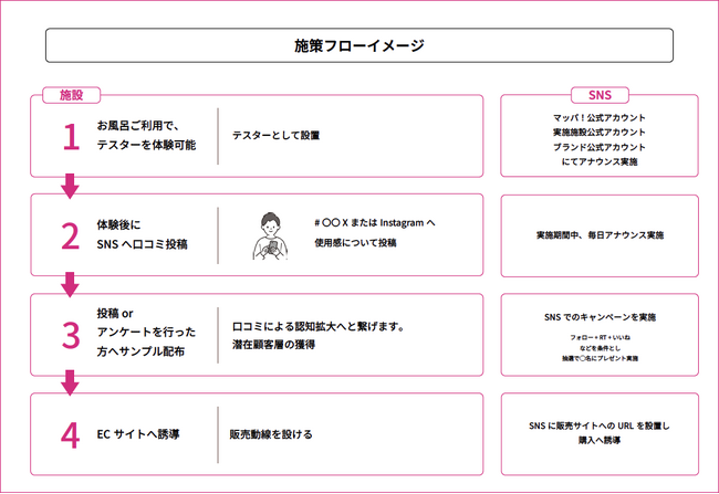 キャンペーン内容:サンプリング&アンケート、温浴施設コラボキャンペーンなど含むサービスの割引