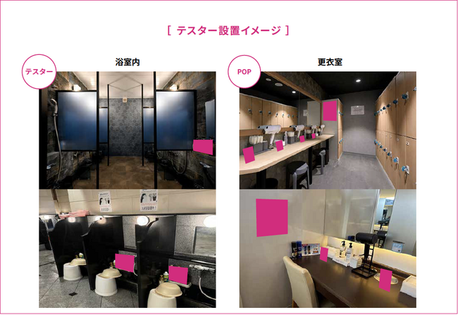 温浴施設を利用されるお客様に対して商品をリアルに体験いただき、認知拡大、販売促進へと繋げていくことができます。
