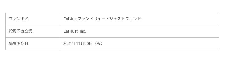 植物由来の代替卵製品を欧米・アジアを中心に販売するほか、シンガポール食品庁の認証で世界初の培養肉販売も行うSDGs注目企業「Eat Just」に投資するファンド。2021年11月30日(火)募集開始