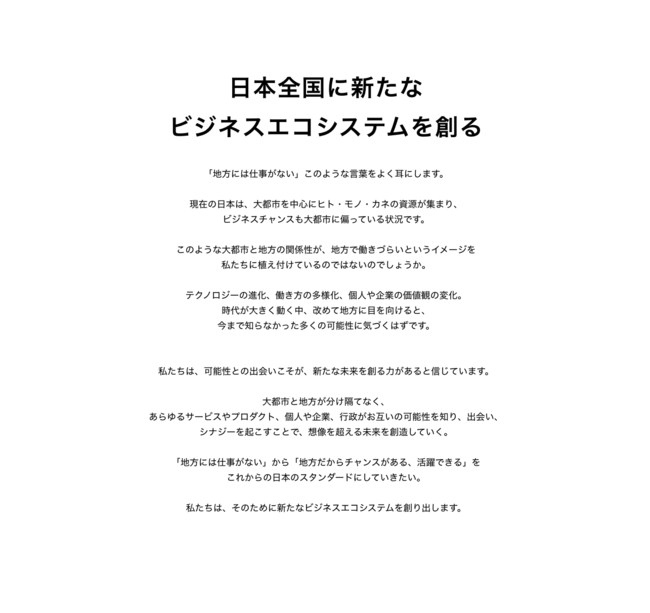 弊社のメンバーは全員が地方出身者です。私たちだからできることがあると信じ、実現したい世界観の明文化を行いました。