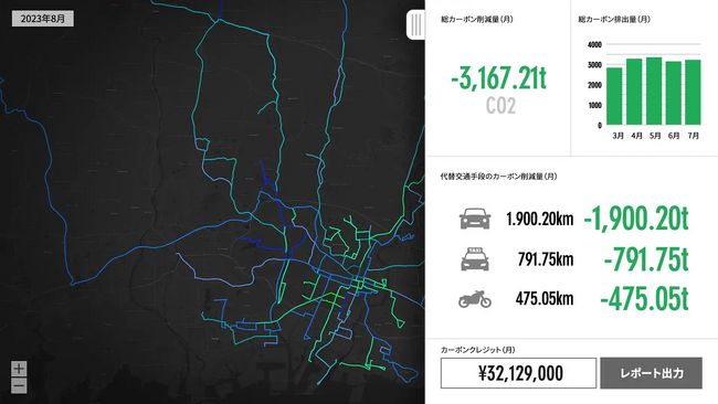 都市内のモビリティは、とくに中小都市の生き残りの観点から極めて重要な要素です。環境・健康志向の高まりを、都市、とくに市町村の中心市街地再生に繋げるためにも、公共交通を中心に多様な交通モードを活用して自動車利用を抑制したモビリティを推進する必要があります。株式会社Spatial Pleasureは、交通モード別のCO2排出量の科学的根拠を保証する形で推定できるプラットフォームを開発し、こうした公共交通中心の都市交通システムへの変換を推進するビジネスに取組んでいます。これは、市民の行動変容、交通サービスビジネスモデルの革命、交通分野の財務改善の観点から、大変貴重なソリューションとなることが期待されます。