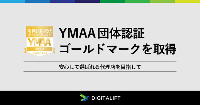 経営課題解決をデジタル技術で支援するコンサルティング企業、株式会社デジタリフト(本社:東京都港区西麻布、代表取締役:百本 正博、証券コード:9244)は、一般社団法人薬機法医療法規格協会が、薬機法、医療法について遵法に広告を行っている事業者に対して認証するYMAA団体認証マーク(薬機法医療法遵守広告代理店認証)を取得しました。