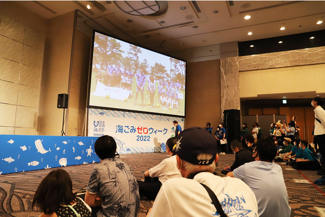 開会式では企業やNPO団体、コスプレイヤーの8チームから、「海ごみゼロ宣言」と称して海ごみを減らす意気込みを表明して会場を盛り上げてくれました。「海ごみゼロウィーク」のキックオフということで同時刻に全国8箇所(北海道、宮城、静岡、愛知、富山、兵庫、愛媛、大分)+インドネシアとオンラインでつなぎ、「春の海ごみゼロウィーク」に懸ける想いを全国から東京会場へ届けてもらい、全国一丸となって「海ごみゼロウィーク」を盛り上げるイベントとなりました。