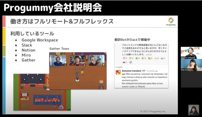 今回の会社説明会では、株式会社プログミーのメンバーが、実際にどのような働き方をしているのかを紹介しています。