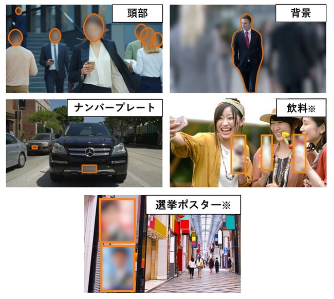 ※従来の顔・頭部・背景(全身)・ナンバープレートの自動検出に加え、2023年4月に飲料(ペットボトル・