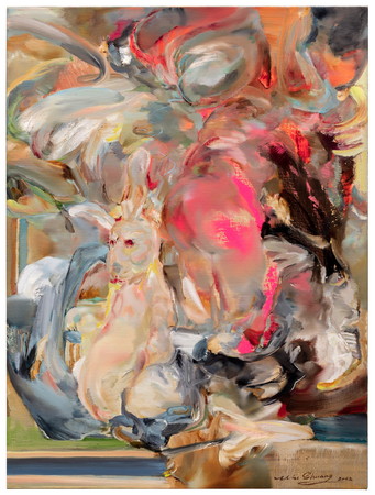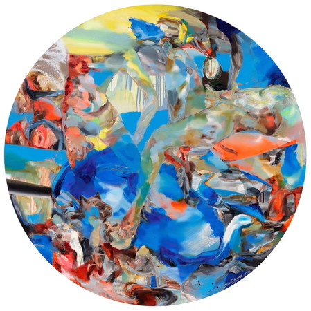 常に進化し続けるウー・シャンは抽象表現主義を追求、その鮮烈な色遣いと筆勢、シュールレアリスティックな世界観で観る者を魅了してきた。メディウムのひとつである発光顔料が色彩の強度を際立たせ、混沌としつつも絶妙な調和を見せるウー・シャンの色面構成。これまでも自然や環境とのかかわりにおける人間にフォーカスしてきたが、今展ではより自然環境や広範な「生そのもの」へと関心が移行。人間に起こる現象は肉体を超え、追憶や内省といった感情のうねりは豊かな光彩が波打つ時空と拮抗しながら統合されてゆく。ウー・シャンの絵画からはさまざまな時代のスタイルが断片的に喚起されるが、映し出されているのはあくまで現在の世相である。