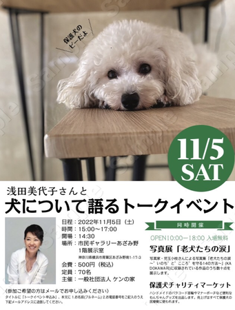 2022年11月15日開催『浅田美代子さんと犬について語るトークイベント』の動画を一部、一般公開しました!