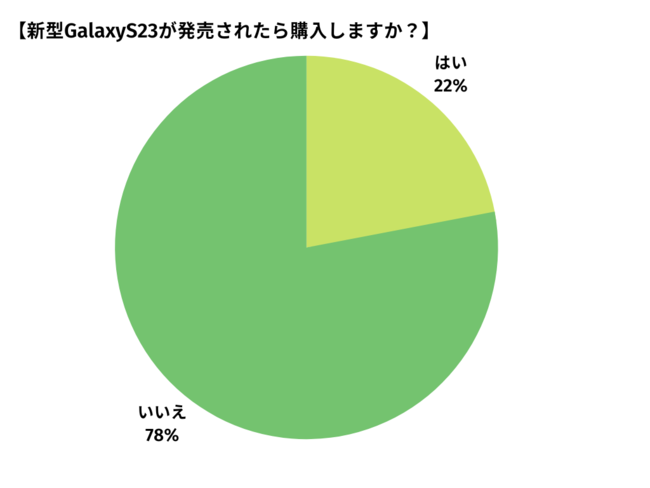 新型GalaxyS23が発売されたら買いたい人が22%、買う気はない人が78%であることがわかりました。