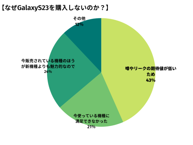 新型GalaxyS23を買わないのは「噂やリークの期待値が低いから」という方が43%であることがわかりました。
