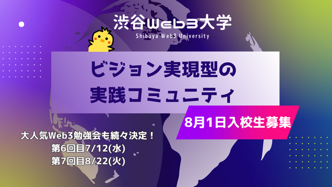【革命家募集】ビジョン実現型の実践コミュニティ渋谷Web3大学8月1日入校生を募集中。大人気Web3勉強会イベントも続々決定。