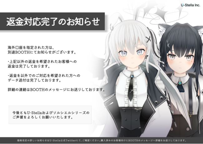 【U-Stella Inc.】価格改定に伴う返金対応完了のお知らせ
