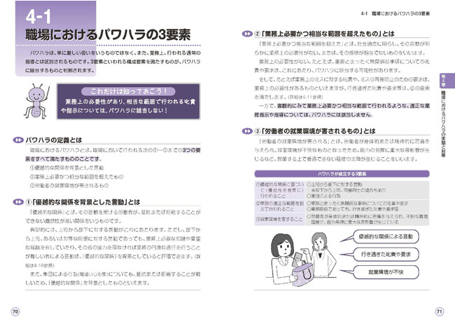 また、どこまでがパワハラで、どこからが「厳しい指導」といえるのか。上司だけでなく同僚のパワハラはあるのか?など、これまでの裁判事例を盛り込みながら、不当な行為が何かについて、わかりやすく紹介します。