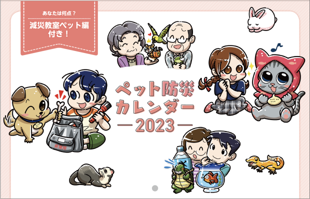 ペット防災カレンダーは、「災害時にペットの命を守るために、飼い主ができる具体的な備え」の情報をまとめたカレンダーです。2021年より発行し、2023年版で3年目となります。