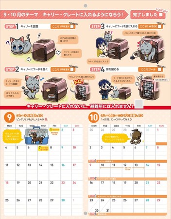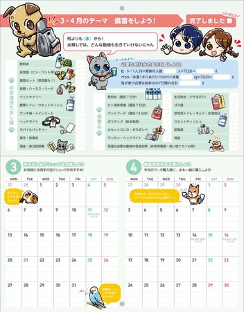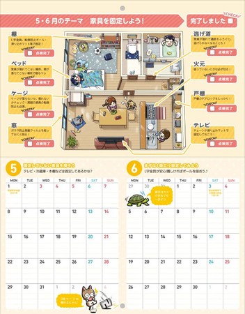 カレンダーは、1年中壁に飾っておくことができます。カレンダーに載っている間違い探しをついついやってしまうことはありませんか?それと同じように、カレンダーにペット防災の知識が載っていれば、自然と知識を身に着けることができます。