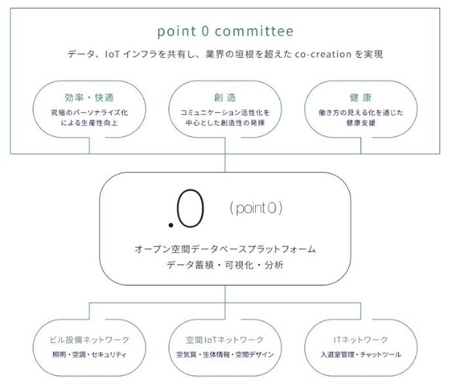 point 0は、異業種コラボレーションにより「働く空間の価値」を創出するオープン・イノベーションの加速化を目的に2019年7月にスタートしました。「未来のオフィス空間」を実現していくためのコワーキングスペースであり、かつ製品やサービスを働く人たちに試してもらう実証実験の空間として『point 0 marunouchi』を運営しています。2022年3月現在、プロジェクトに参画する企業は20社に上り、協創/共創の幅が広がっています。