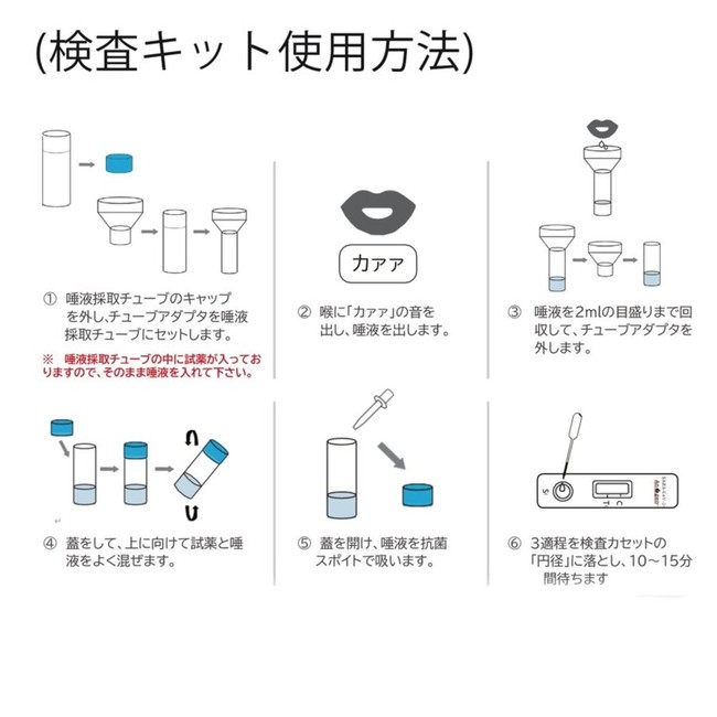 新型コロナウィルスの抗原が『今、唾液内に存在するのかどうか?』を簡単、且つ迅速に検査できる、研究用試薬となります。