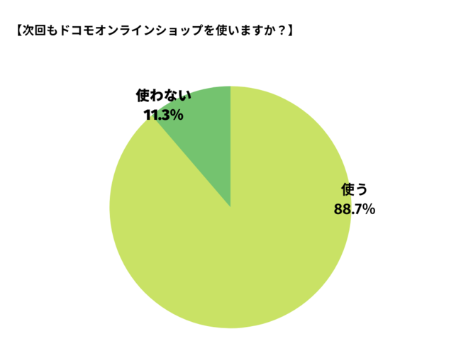 89%のドコモユーザーが次回もオンラインショップを使いたいと回答していることがわかりました。
