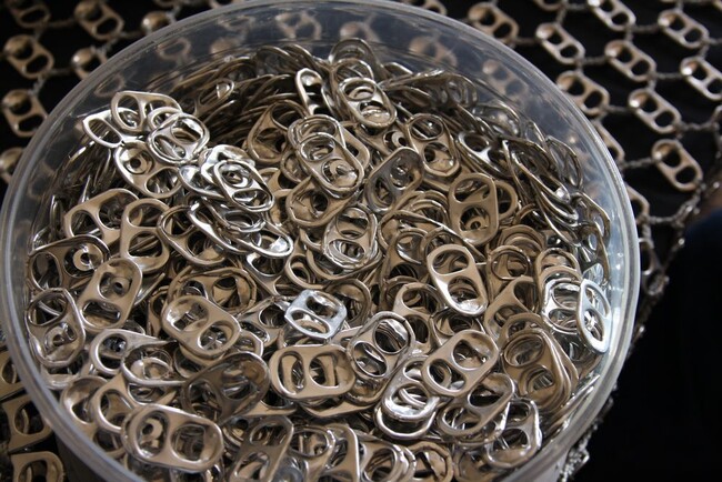 捨てられるはずだったプルタブを回収し手作業で洗浄、尖っている部分は一つ一つカットし分別、手編みで編まれています。