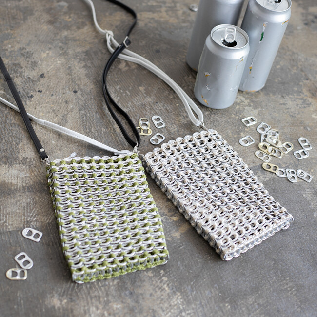 プルタブ・スマホポーチは、限りある資源をアイデアで再活用するアップサイクルのアイデアで作られたポーチです。