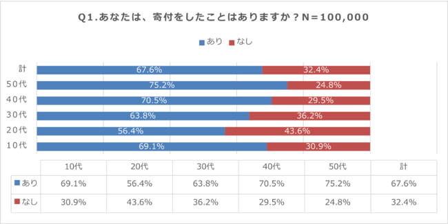 寄付したことがある、と回答したのは約7割(67.6%)。