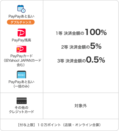 ※ 「PayPayあと払い(一括のみ)」でお支払いの場合も、ダブルチャンスがあります。