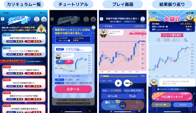しかし、FXはギャンブル性が高いとの声もあるため、体験型FX投資学習スマホアプリ「FXなび」では、感覚だけに頼るのではなく、過去の為替チャートからトレンドやパターンなどを把握し、将来の為替動向を予想するテクニカル分析の取引スキルを身に着けることができる「STEP UP」機能を2022年3月より提供してまいりました。