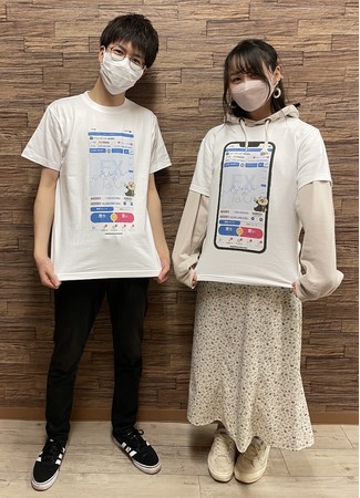 左側:Mサイズ&スマホ枠なし版着用/負けず嫌い、右側:Sサイズ&スマホ枠あり版着用/自称真面目